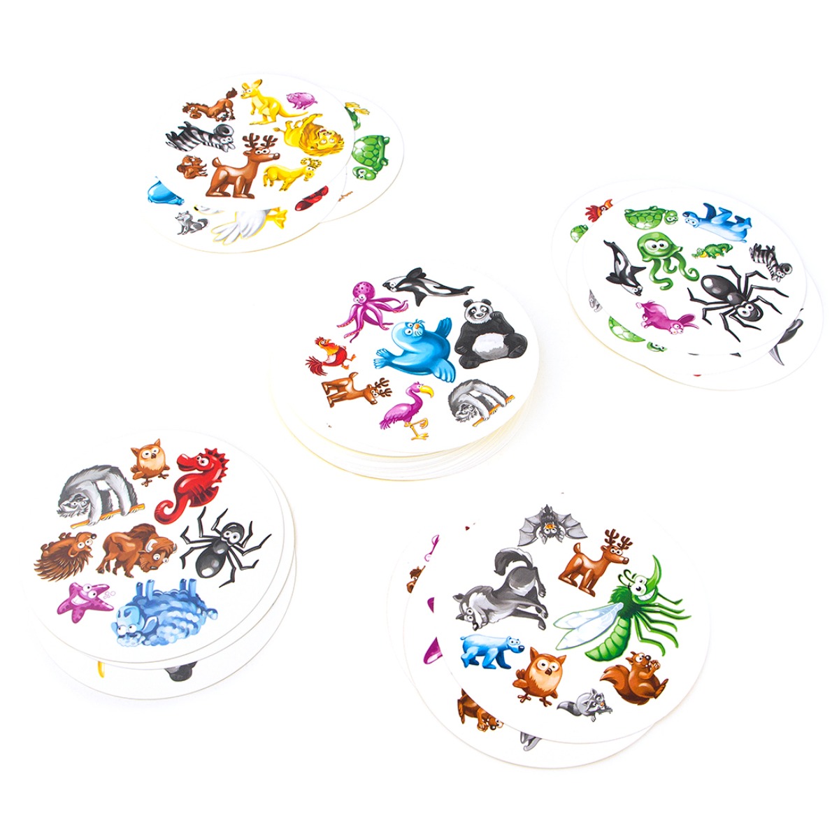 То як грати? Ти матимеш круглі картки із зображеннями тварин. Суть в тому, що на будь-яких двох картах є одна однакова тварина. Навіть якщо ти годину не можеш її побачити. А той, хто першим її знайде – перемагає.