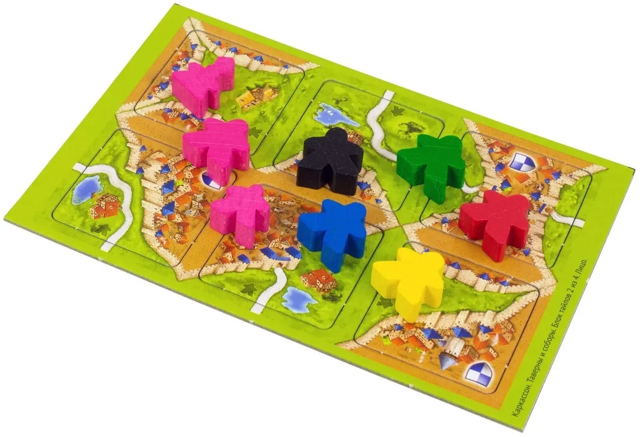 У доповненні 18 нових тайлів: 6 з тавернами, 2 з соборами й 10 звичайних (але від цього не менш корисних). Також ти отримуєш великого міпла (Big Meeple) для кожного кольору – це такий збільшений міпл, який рахується за двох звичайних під час підрахунку більшості. Дуже корисно для захоплення чужих об’єктів або захисту своїх. І найголовніше – повний набір компонентів для 6-го гравця: міпли, великий міпл, лічильник очок. Тепер можна грати великою компанією і всі будуть щасливі (ну, окрім того, хто програв).