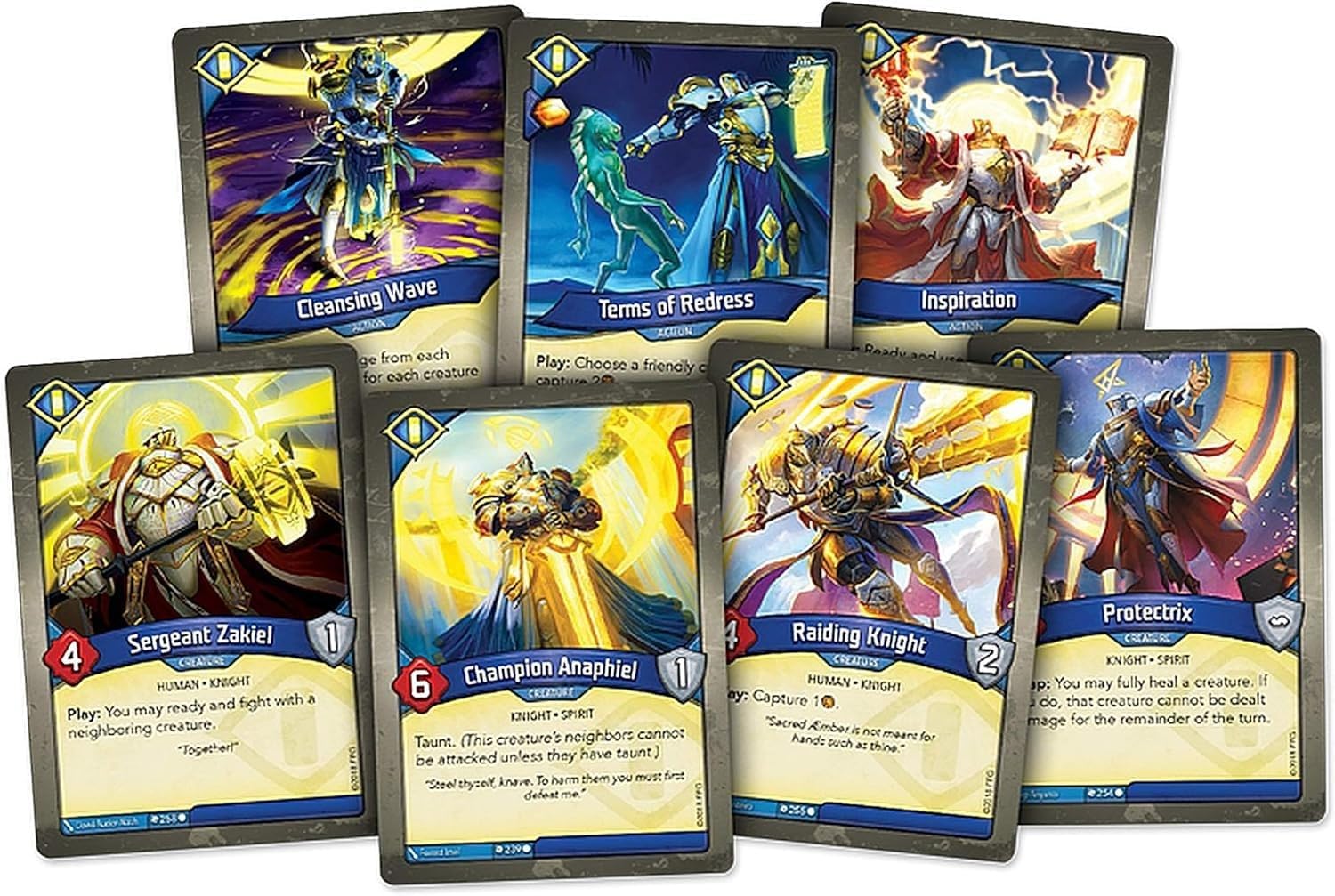 Але твій противник не буде спокійно сидіти, поки ти збираєш ресурси. Твої створіння можуть битися з ворожими, красти їхній янтар, захоплювати його або взагалі знищувати. Sanctum може зцілювати твоїх бійців, Shadows – красти як професіонали, Brobnar – товкти все навколо, а Logos – забезпечить тебе картами та стратегічними можливостями. Найкраще те, що тобі не потрібно збирати колоду чи купувати бустери – все вже готове до гри прямо з коробки!