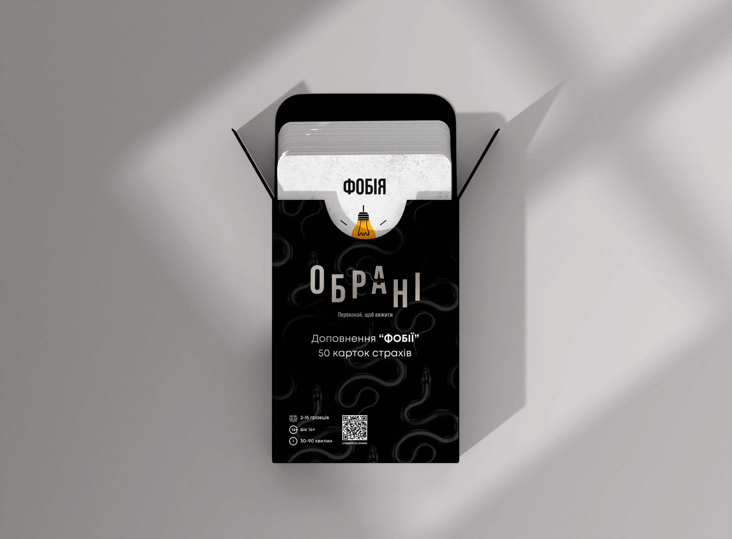 Якщо Обрані вже завоювали твоє серце, “Фобії” — must-have доповнення, яке виводить гру на абсолютно новий рівень! За символічну ціну ти отримуєш 50 способів ускладнити життя собі та друзям, плюс гарантію того, що кожна партія буде ще більш непередбачуваною та веселішою.