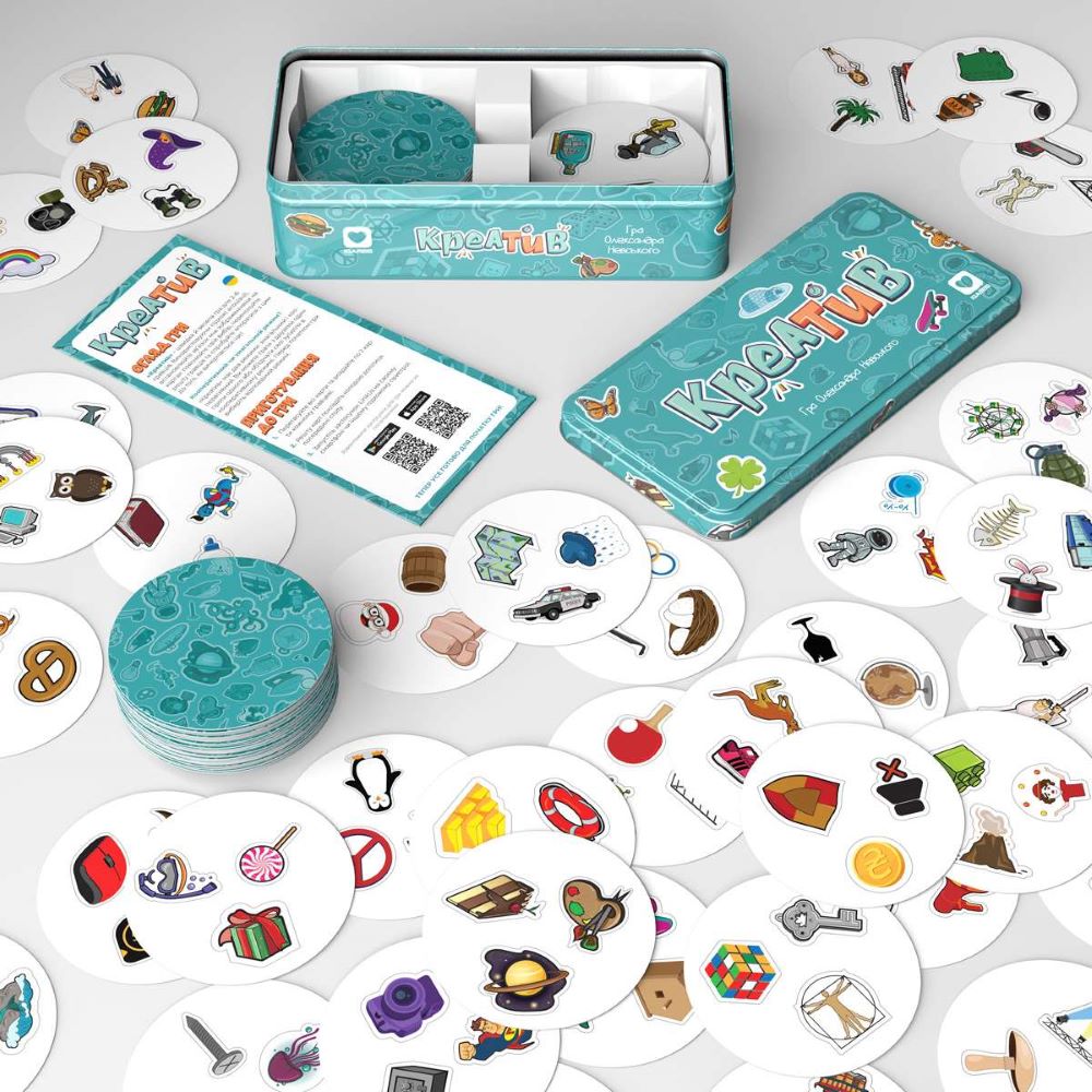 У настолці «Креатив» ти цим і займатимешся – шукатимеш точки дотику там, де їх не звикли бачити. На картці ти матимеш по три предмети, які треба поєднати якнайшвидше. Тож вимикай стереотипи – фантазія тебе добряче здивує.