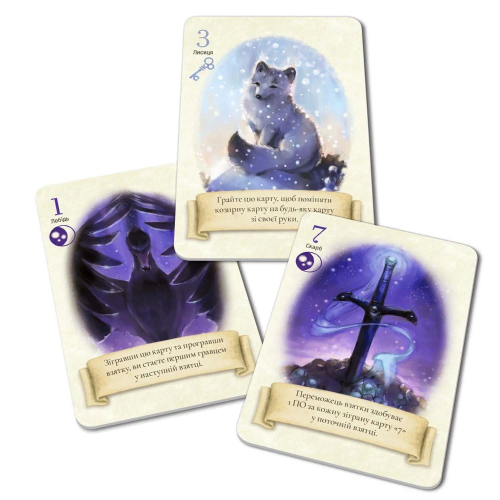 У чому магія? Карти героїв мають свої таємні сили, наприклад, чарівний помах хвоста лисиці може змінити козир. Пам’ятай, що у казках добро завжди перемагає, тому учасник, який перевищить дозволену кількість взяток не отримує бал. Та хитра Лисиця завжди знає, скільки карт треба взяти!