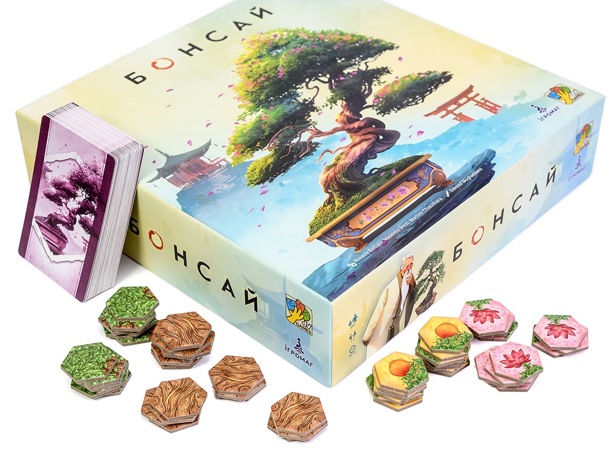 Настілка «Бонсай» пропонує гравцям поринути в мистецтво створення мініатюрних копій рослин. Тут знадобиться неабияка увага до деталей та вміння тримати баланс. Гра починається з невеликого вазончика та маленького паростка у ньому. Протягом партії учасники піклуватимуться про свій бонсай, аби потім прикрасити ним імператорський сад. Гравці викладатимуть гекси стовбурів, листя, квітів та фруктів, аби отримати переможні бали наприкінці гри.