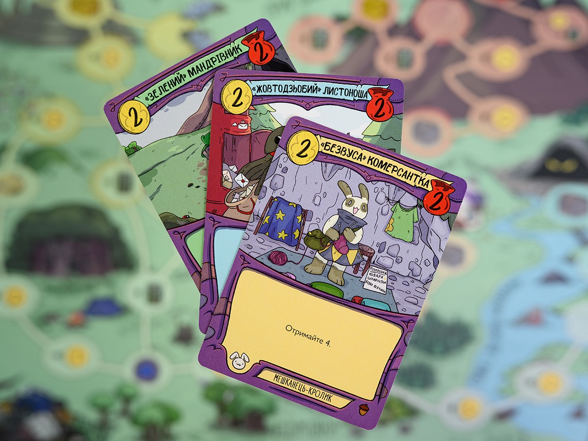 Ігрове поле — це подвійна дошка з двома різними маршрутами, кожен з яких має свою специфіку та акценти. Один маршрут може давати більше ресурсів, інший — більше можливостей для тактичних маневрів. Обираєш маршрут на початку партії разом із суперником, і це вже задає тон грі. Переміщуєшся полями вперед, отримуєш винагороди за досягнення певних локацій, повертаєшся додому в кінці шляху й починаєш нову мандрівку зі свіжими силами. Кожна нова мандрівка — це можливість перебудувати свій двигун, адаптуватися до поточної ситуації, змінити стратегію. Водночас важливий баланс: щоб отримати максимальну ефективність, треба запрошувати до себе мешканців різних видів більш-менш рівномірно. Якщо в тебе десять воронів і жодного кролика, ти втрачаєш синергію між картами та бонуси за різноманітність. Це не випадковий хаос — це тактичне планування під час набору карт.