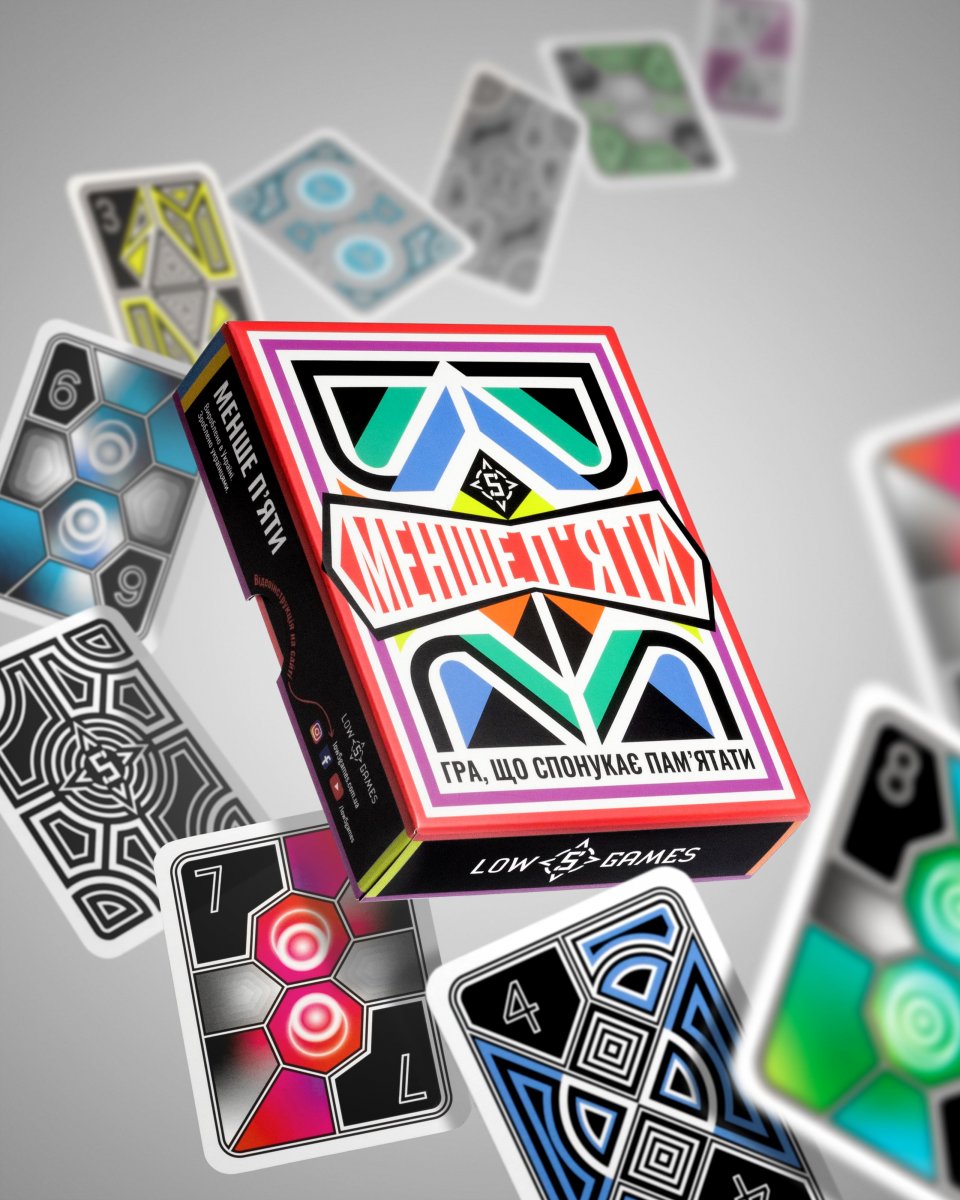 Скільки карток ти можеш запам’ятати одночасно? П’ять? Десять? А якщо вони постійно міняються місцями, і ти не маєш права їх підглядати? Знайомся з “Менше п’яти” — українською грою, яка перетворить твою пам’ять на справжній тренажерний зал для мозку! Це авторська розробка від Low 5 Games, де треба не просто рахувати, а запам’ятовувати, де лежить яка картка, та сподіватися, що супротивники її не перекладуть.