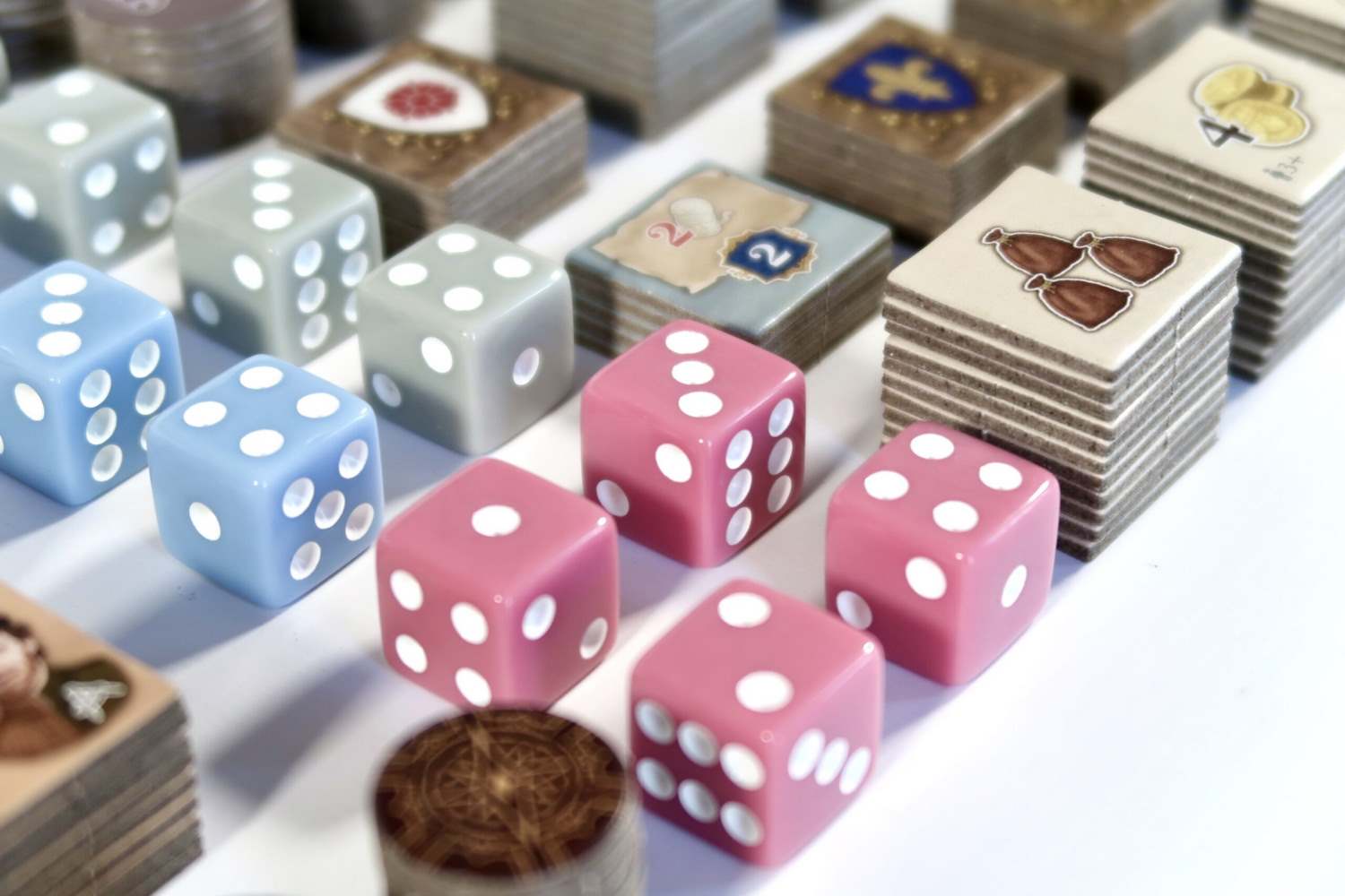 Кубики, якими грають учасники в цій настілці, виконують подвійну функцію: допомагають в отриманні ресурсів та виконують певні дії. Кидок кубика знаменує початок раунду. Цікавою особливістю настілки є те, що сила дії обернено пропорційна значенню кубика (що менше ресурсів гравець отримує, то сильнішою стане його дія, та навпаки).