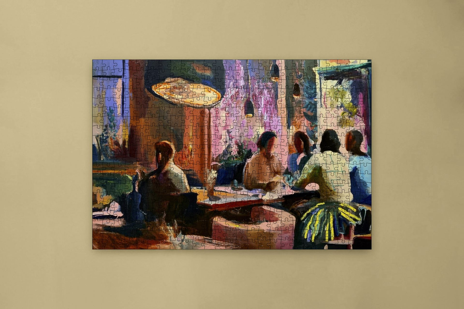 “ATMOSPHERE” від Frisson – це пазл, створений разом із художником Євгеном Клименко (Evgen Klimenko). Уяви затишний вечір, де світло м’яко торкається плечей, розмови пливуть у повітрі, а погляди, жести та фарби складаються в спільний настрій. Це мить, у якій усі на одній хвилі. Тепло, присутність, відчуття, що ти на своєму місці. Саме таку атмосферу передає цей пазл – вечір, який хочеться закарбувати в пам’яті назавжди. Український арт у кожній деталі, створений для того, щоб сповільнити час і насолодитися процесом.