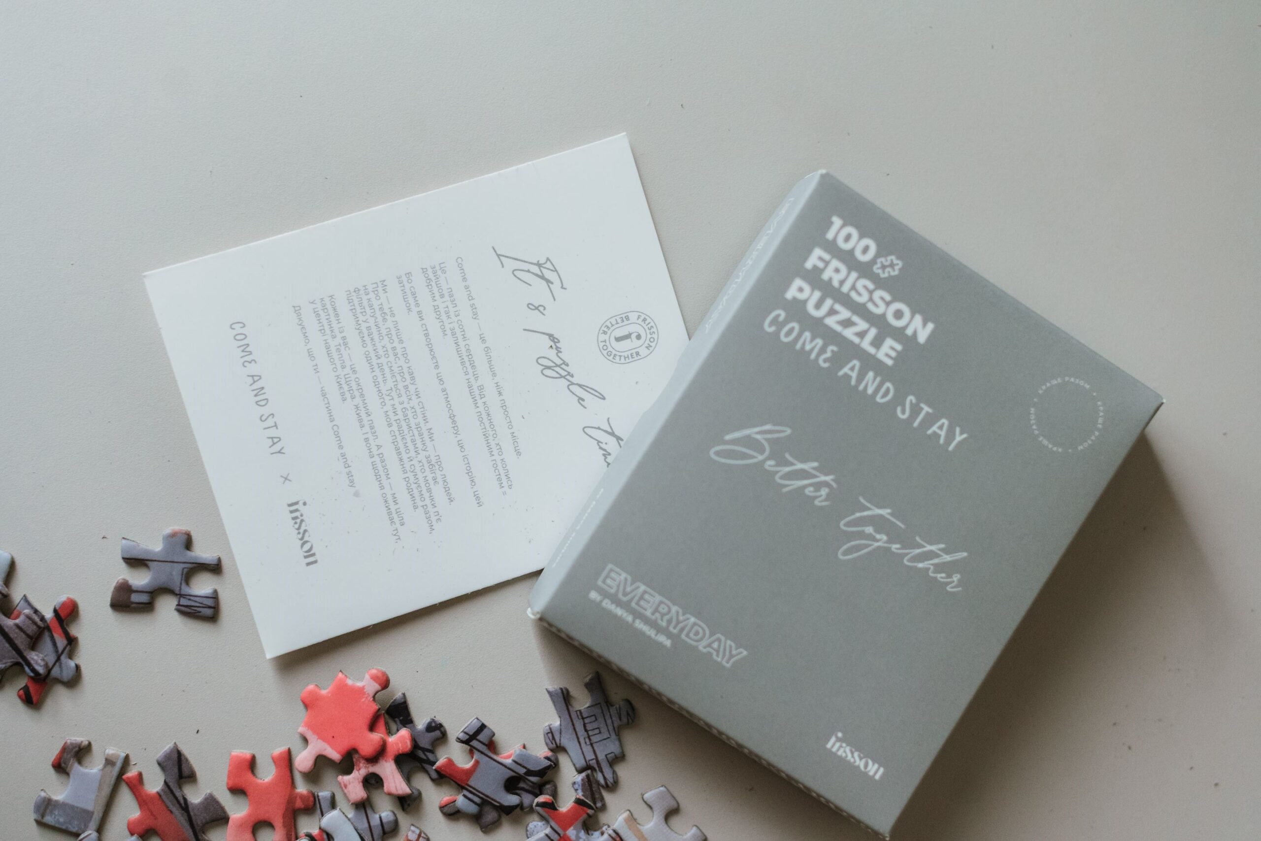 Пазл EVERYDAY — це колаборація українського бренду Frisson з ілюстратором Danya Shulipa та київською кав’ярнею Come and Stay. Це не просто картинка для складання. Це історія про людей, спільноту, про те, як окремі серця створюють одне велике тепле місце. Кожен відвідувач кав’ярні — це окремий пазл. А разом — цілісна картинка затишку, щирості, живої атмосфери.