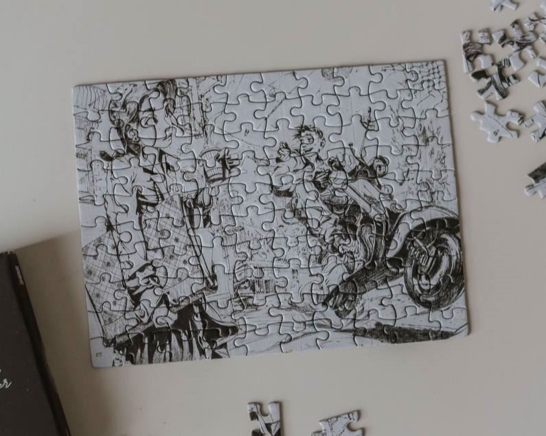 Frisson разом з київським кафе “Дилетант” та Graphoman зробили з цієї роботи пазл. 100 деталей, 15×20 см. Міні-формат, швидке складання, максимум атмосфери.
