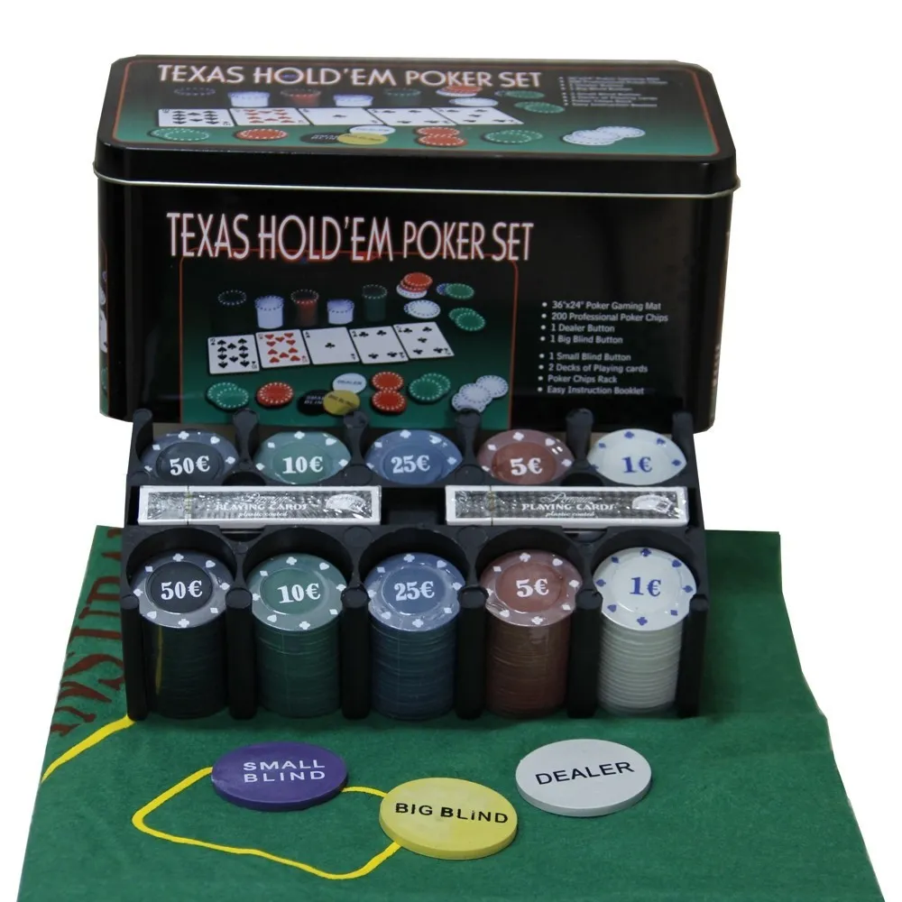 Покерний набір 200 фішок з номіналом + сукно (бляшана коробка) — твій домашній казино