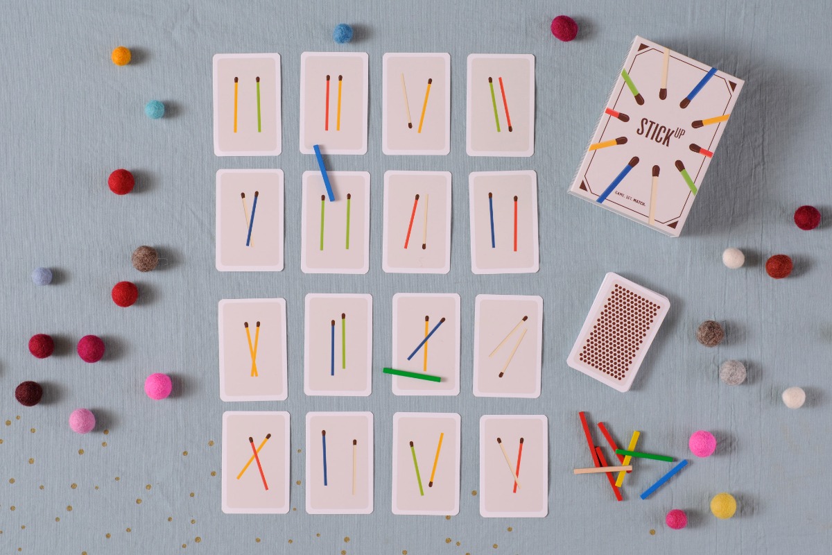 «Stickup» – це кольорова гра на швидкість і візуальне сприйняття, яка поставить нестримний потік думок на стоп. Усе дуже просто: як тільки кольорові сірники торкнуться столу, візьми картки відповідного кольору швидше за інших.